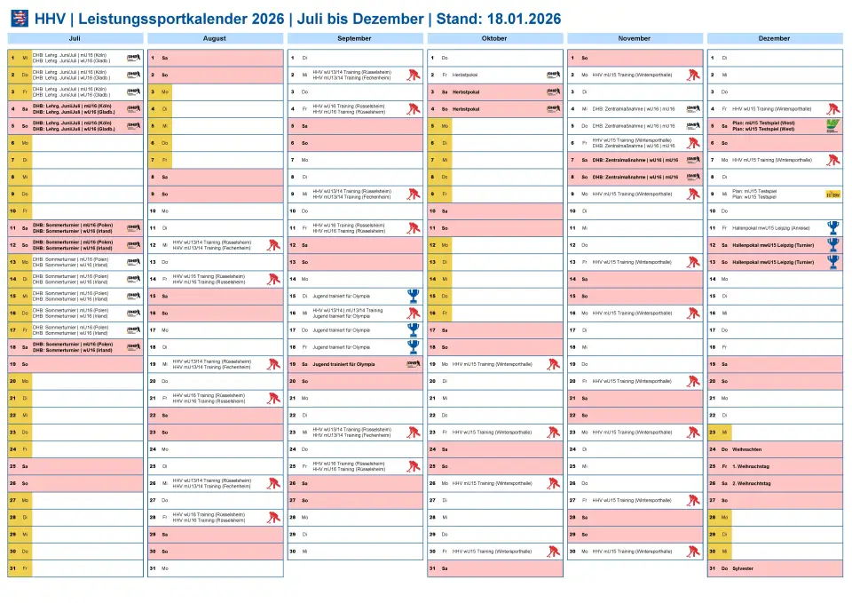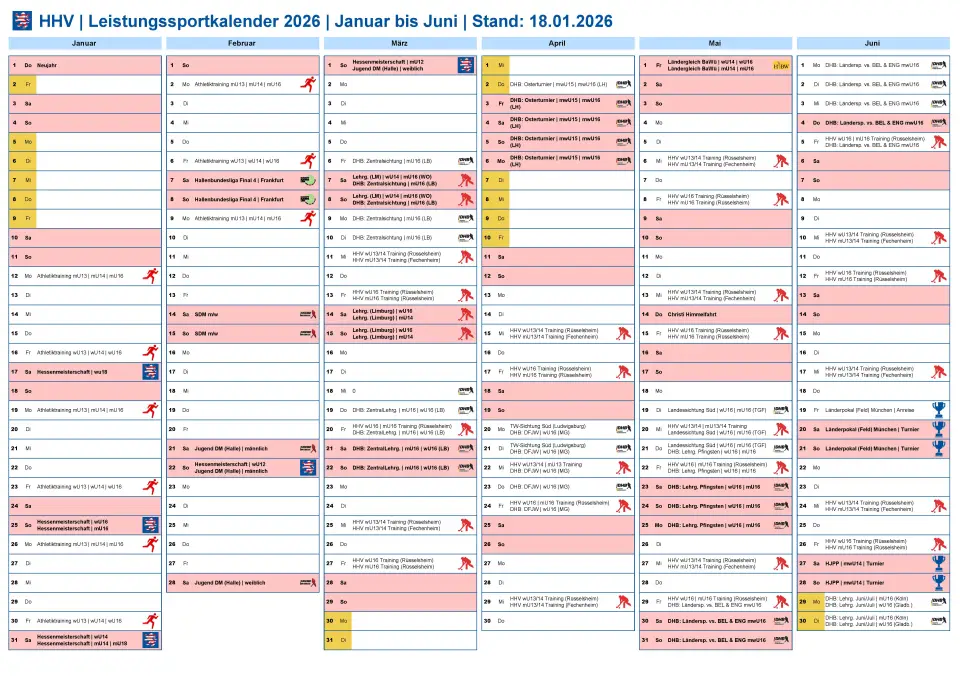Der HHV-Leistungssportkalender zeigt alle wichtigen Hessenhockey- und sonstige Hockey-Termine.